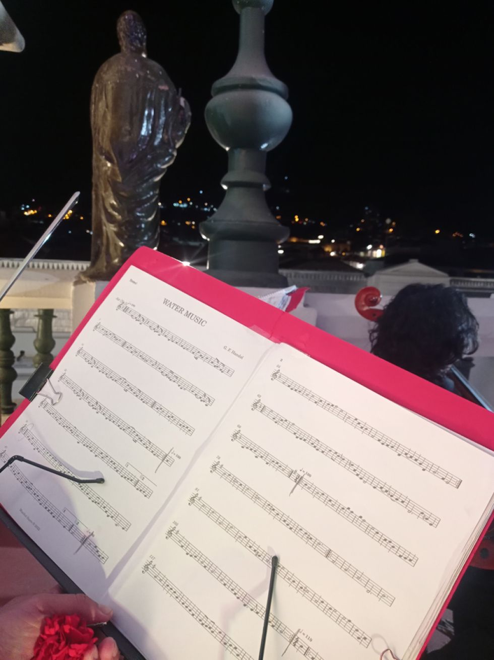 Llegar a las bóvedas de la Catedral fue un desafío, pues se sube por la torre del reloj, por estrechas y altas graderías de piedra de al menos 400 años de antigüedad, para luego sortear las gordas campanas hasta salir por una puerta para duendes hacia las bóvedas del techo donde sonaba la "Suite Acuática" de Handel, interpretada por Musikal Sucre y dirigida por Álvaro Monrroy, para un público insólito sentado en las bóvedas de la Catedral.