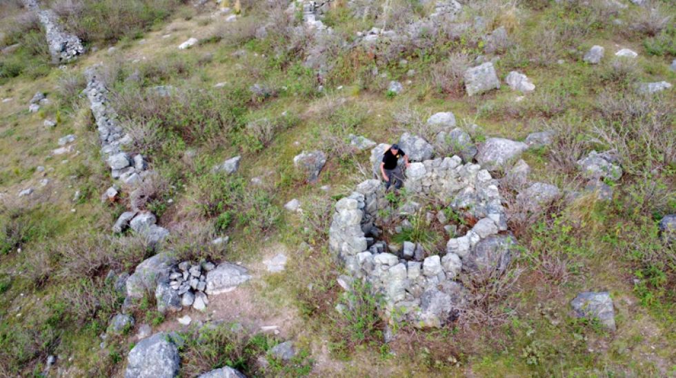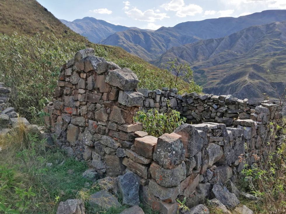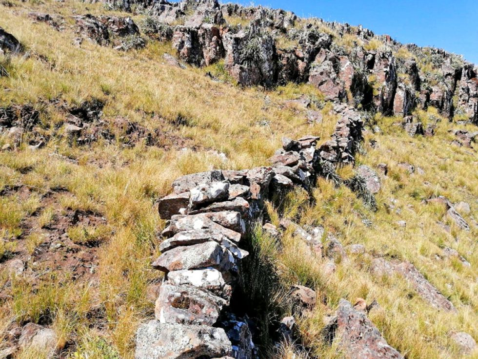 Ingresamos a una quebrada, subimos una pequeña pendiente y al salir del Abra nos topamos con un campo de piedras que, al verlos detalladamente en medio de los arbustos, dije: “¡son los fuertes!”. No era uno solo, sino varios, posicionados unos detrás de otros, que formaban paredes casi de línea recta. Pero también había construcciones de paredes cuadradas o rectangulares que dan a entender que eran habitaciones o espacios de refugio.