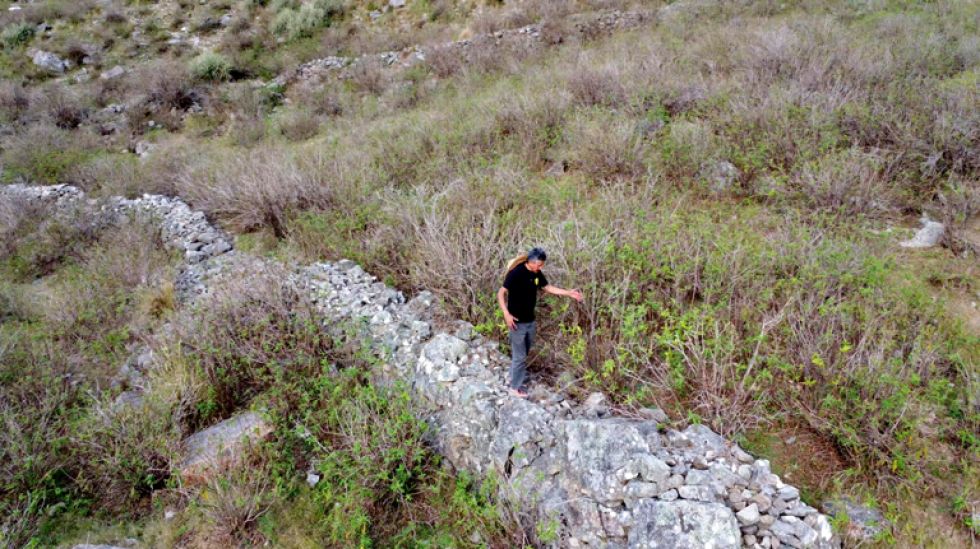 Seguimos caminando y llegamos a un lugar donde el cerro era más escabroso y empinado. Desde ese sector se veía otro fuerte hacia abajo y me animé a bajar. Pedí que Andrés y Jhannet se quedaran por cuestiones de seguridad. Llegué al mencionado lugar y, en efecto, me topé con un fuerte de pared mucho más ancha y regresé ante el equipo para mostrar las imágenes.