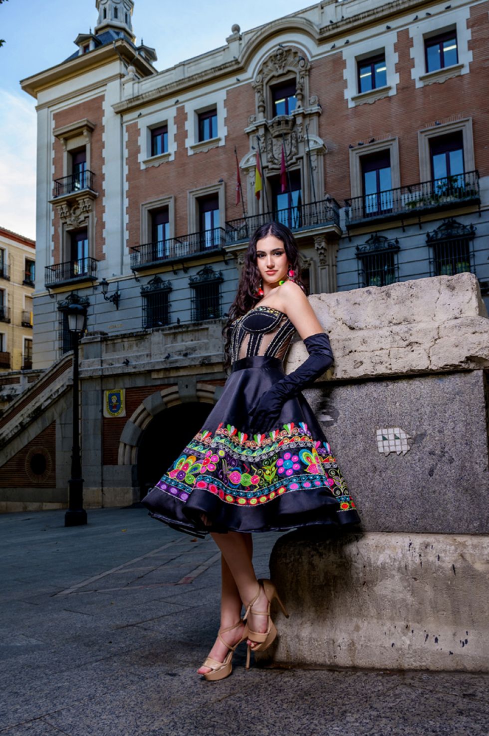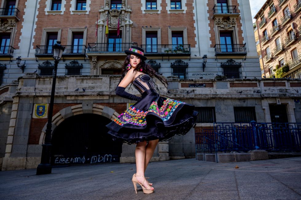 Dedicada a Aida Loayza, una figura inspiradora y firme defensora de los derechos de las mujeres y su tierra, Avilés rinde con esta colección homenaje a una chola moderna, sofisticada y empoderada, que mantiene viva su herencia mientras avanza hacia un futuro lleno de posibilidades.