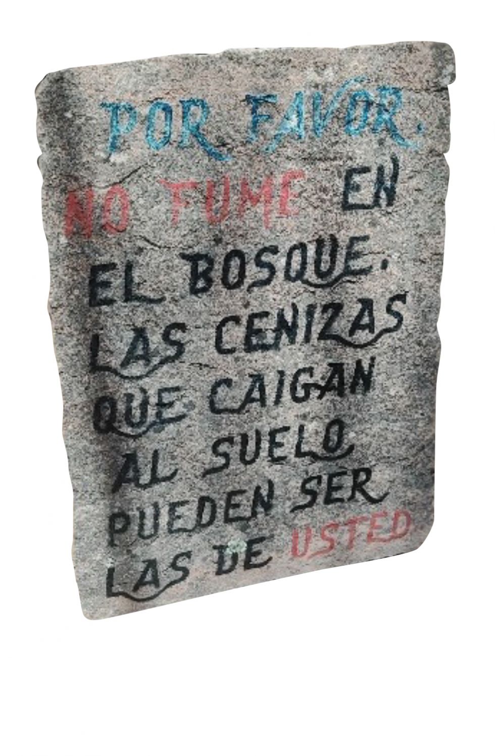 Por favor, no fume en el bosque. Las cenizas que caigan al suelo pueden ser las de usted.