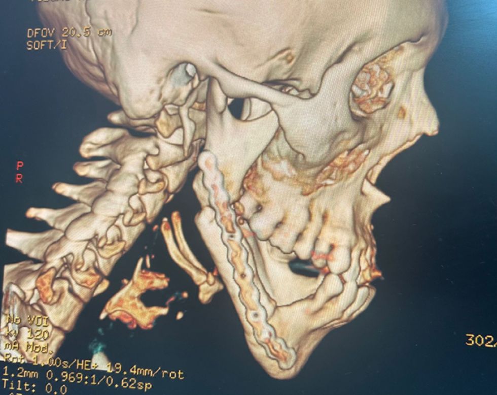 La historia de esta cirugía comienza en 2017, cuando la paciente fue valorada por primera vez en el Instituto Chuquisaqueño de Oncología con diagnóstico de cementoblastoma, un tumor benigno de la mandíbula. En aquel entonces, los cirujanos realizaron una primera intervención utilizando un injerto de hueso de cadera, fijado con placas y tornillos. El procedimiento fue exitoso, pero en 2024 la placa se fracturó y el injerto se reabsorbió en un 80%.