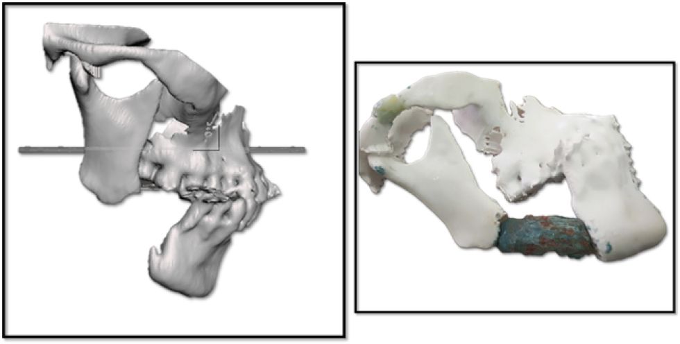 “La indicación era la reconstrucción mandibular con colgajo microvascularizado. Asumimos el reto sin haberlo hecho antes por la paciente, que era del SUS (Sistema Único de Salud)”, relata el doctor Aillón. La planificación se desarrolló mediante una cirugía virtual guiada con biomodelos digitales del peroné y la mandíbula, herramienta que permitió anticipar los cortes, definir el tamaño del injerto y diseñar las placas antes de entrar al quirófano.