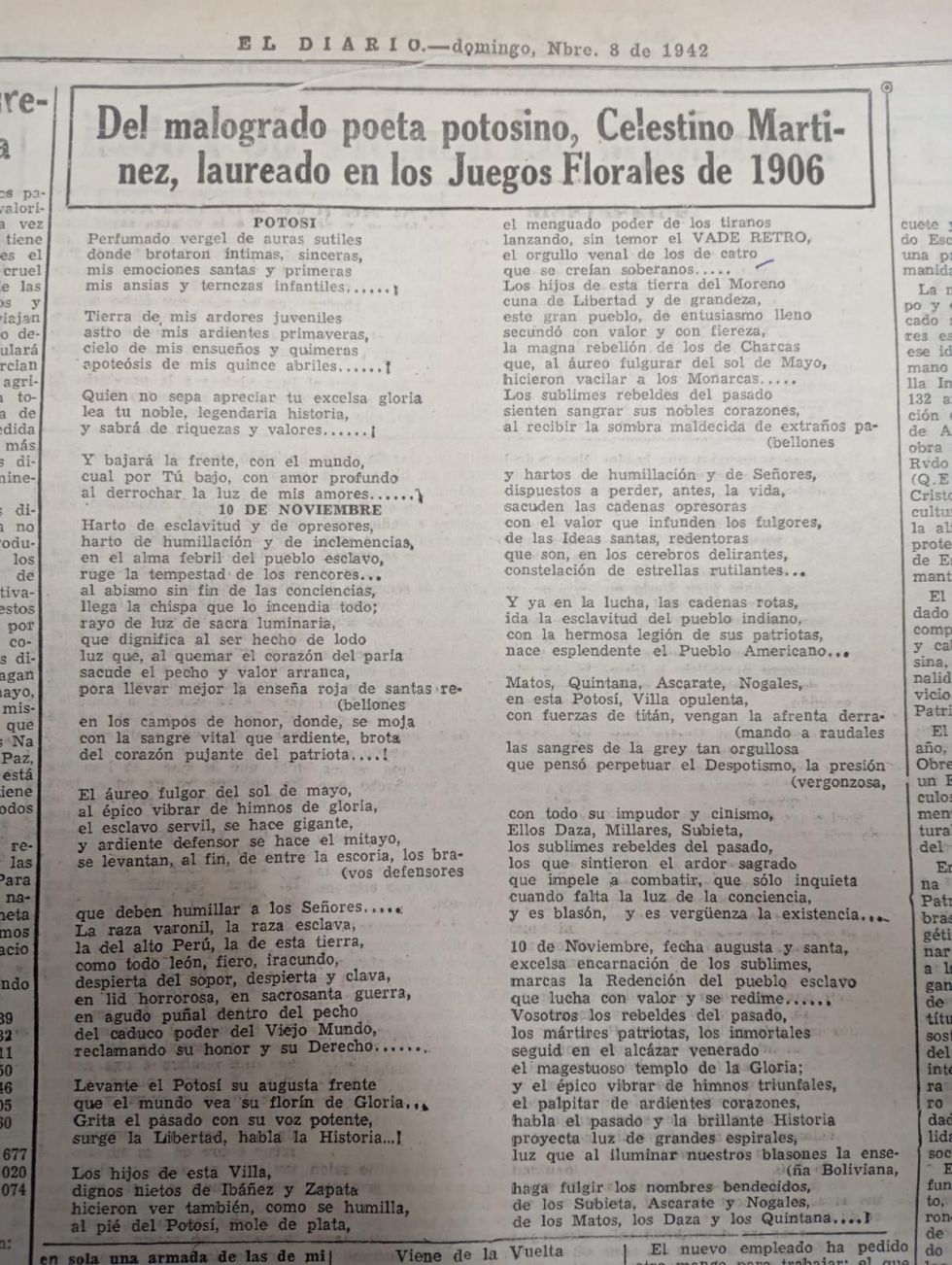 El artículo de Medinaceli, titulado “Celestino López y su ambiente”, fue publicado en 1922 y, por entonces, el poeta seguía viviendo en Cotagaita.
