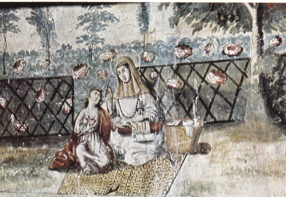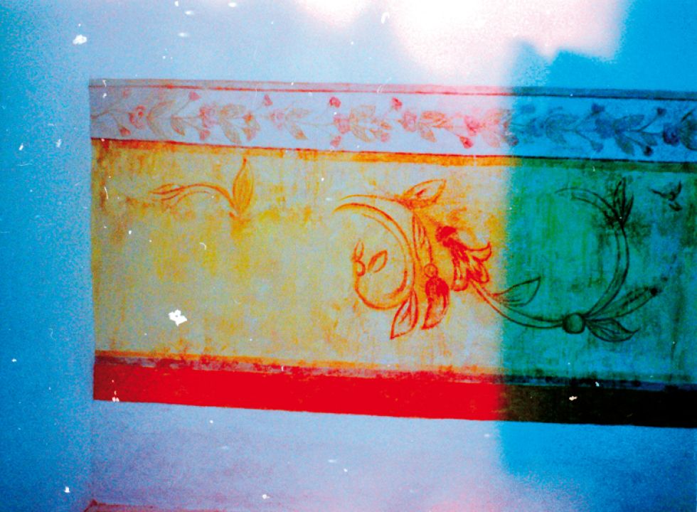 Pintura mural. La nave del templo está pintada con murales, utilizando varias capas de policromía. Es un conjunto pintado con la técnica al temple. Posiblemente puede datar de fines del siglo XVI.