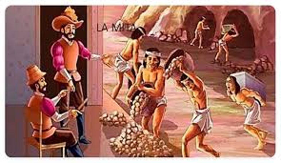 Indígenas en el Cerro Rico: Durante el coloniaje, en los siglos XVI y XVII, la minería de metales preciosos constituyó un sector económico clave de la dominación europea. A causa de la explotación del Cerro Rico de Potosí, a partir de 1573 se nutrió unívocamente de mano de obra indígena. El reclutamiento y la concentración de los indígenas se hacían en lugares determinados cercanos a la Villa Imperial.