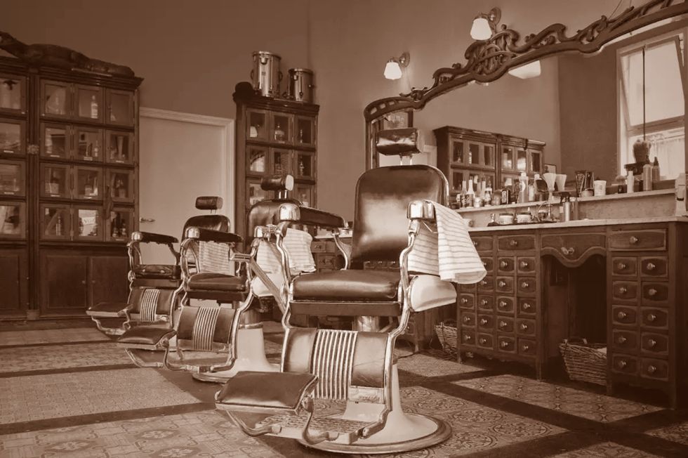 Las peluquerías ostentaban espejos alemanes biselados, jaboneras de porcelana, un calentador de agua que funcionaba con alcohol, sillones giratorios sobre pesadas bases circulares de hierro y, por supuesto, navajas y máquinas para cortar el cabello.