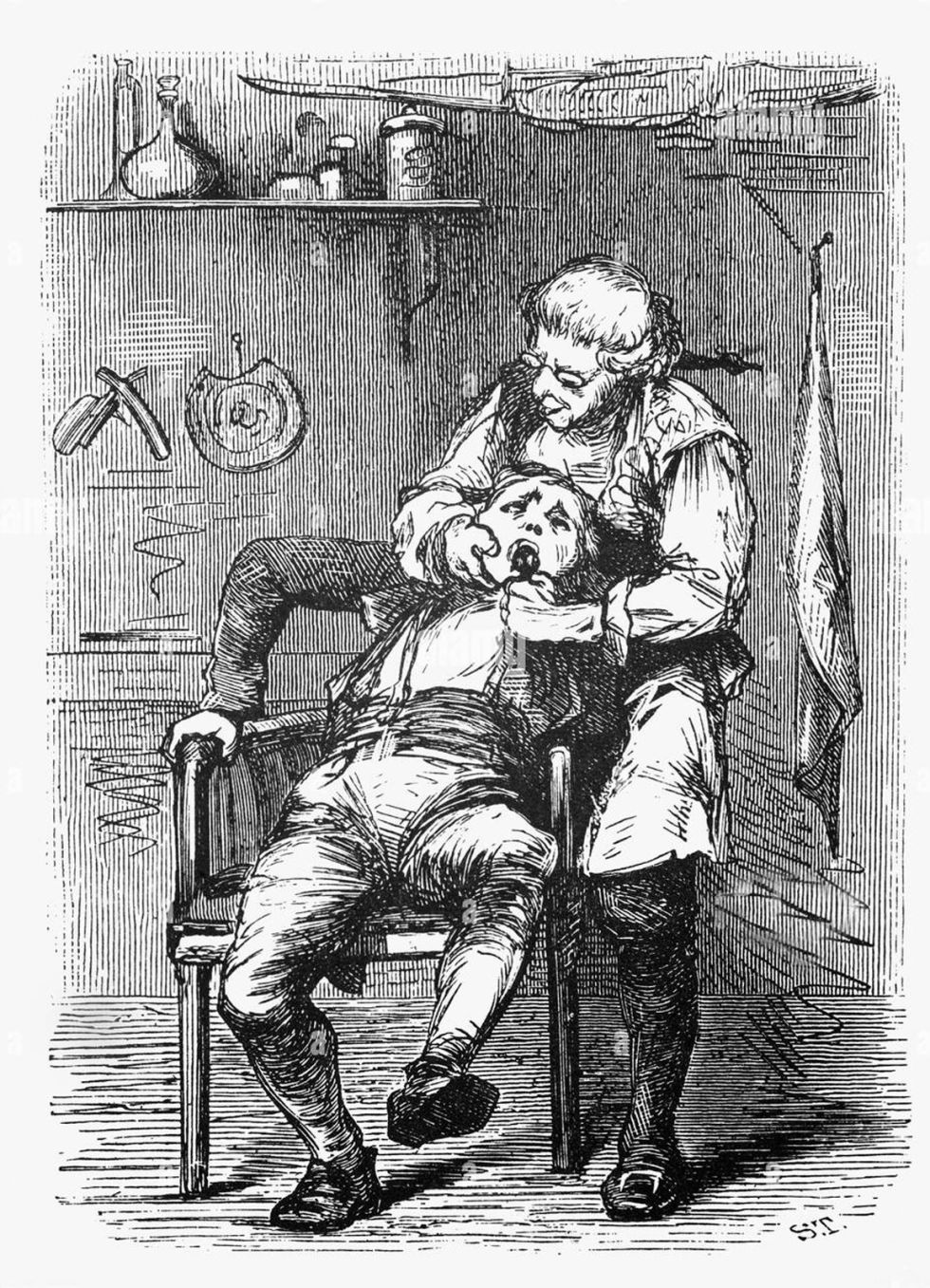 Eran inevitables esas escenas algo risibles. En aquel tiempo, todos sentían terror por los peluqueros-flebótomos. Todavía no se conocía la anestesia ni tampoco a los dentistas.