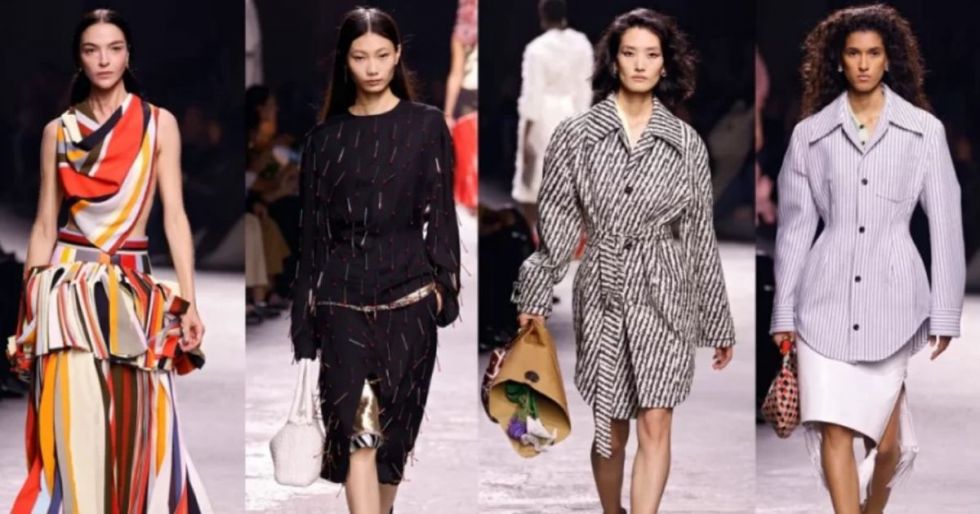 Aunque esta moda ochentera vienen latiendo desde temporadas pasadas, ahora se consolida en colecciones como la de Bottega-Venetta SS25, en la que se ve juego de volúmenes, hombros estructurados y siluetas amplias.