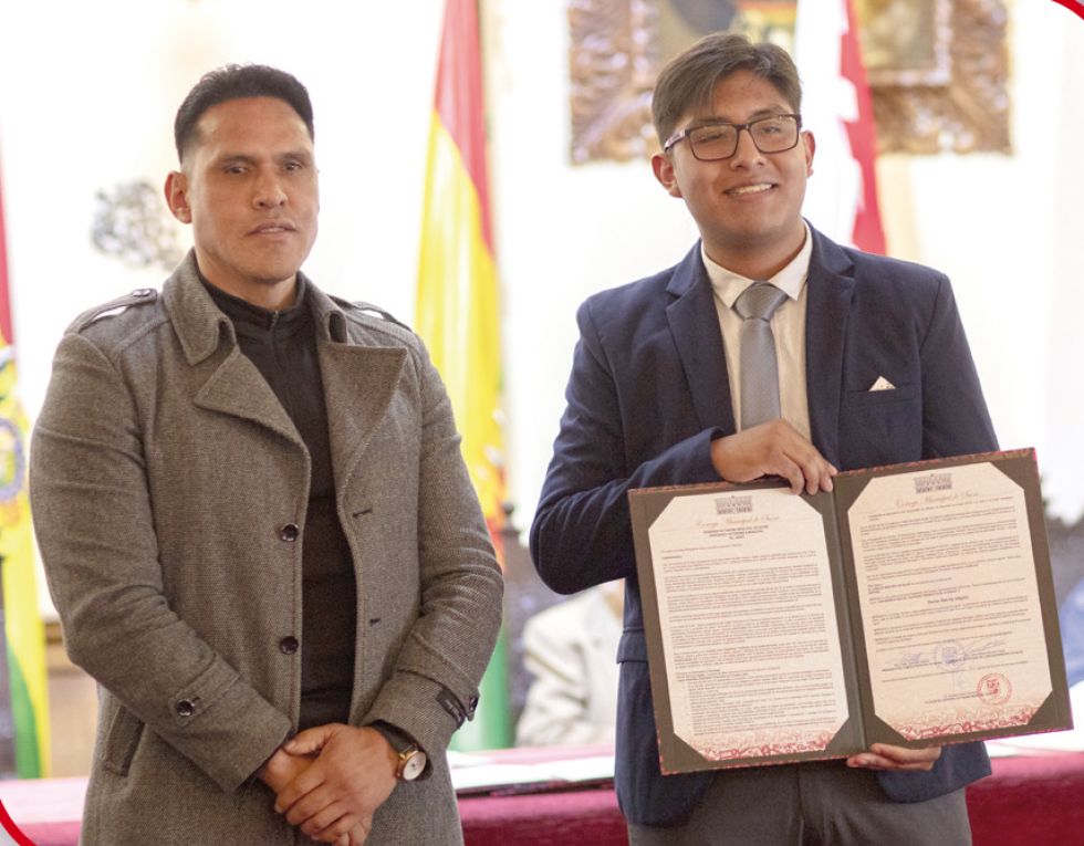 En una Sesión de Honor, el Concejo Municipal de Sucre otorgó el título de “Ciudadano Predilecto de la Ciudad” a jóvenes que se han destacado por su compromiso, esfuerzo y aporte ejemplar a la sociedad.