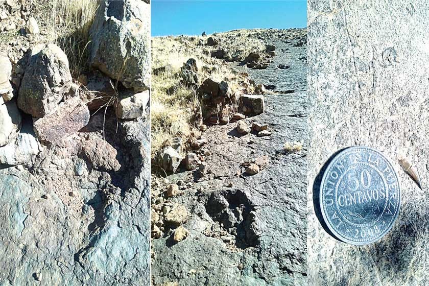 Las precipitaciones pluviales despejaron la capa de tierra que cubría los planchones que contienen las huellas, dejándolas expuestas. Los pasos corresponden a saurópodos, conocidos también como “cuello largos” (cuadrúpedos herbívoros de 15 metros de longitud); las pisadas que dejaron son parecidas a las de los elefantes, tienen una longitud de entre 40 y 50 centímetros; serían unas 20 huellas, explicó Medina.