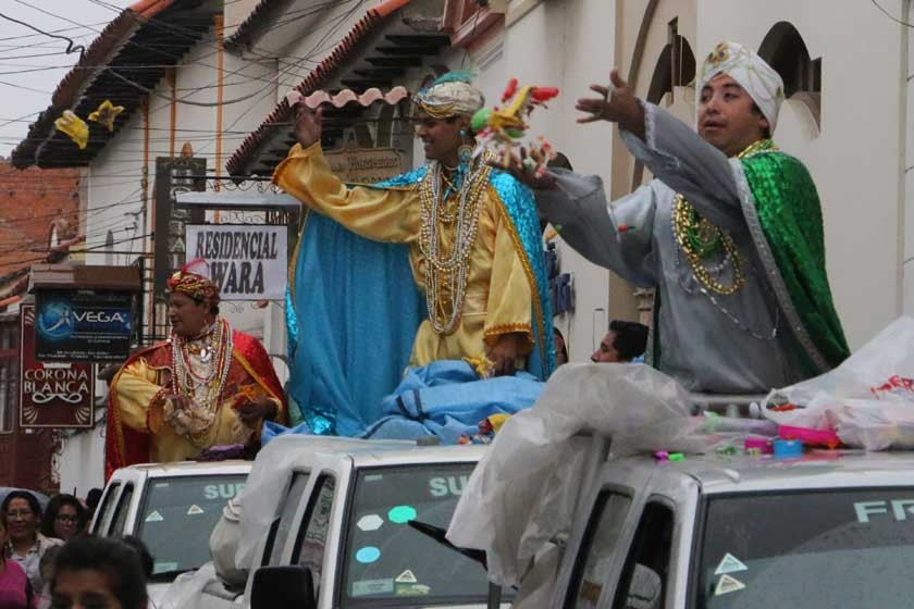 A bordo de camionetas y cargados de juguetes, dulces y galletas, los tres Reyes Magos recorrieron más de un kilómetro desde la parroquia de San Sebastián hasta San Francisco, en medio de la alegría de niños y adultos que levantaban las manos para recibir los regalos.