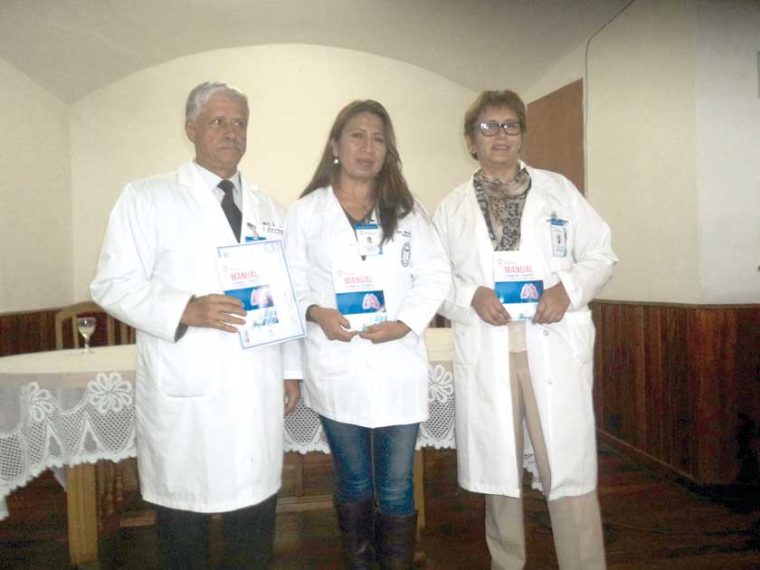 Con el objetivo de apoyar los primeros pasos de los internos de la carrera de Medicina, así como a otros galenos, uno de los neumólogos del hospital Santa Bárbara, Renato Peñaranda, entregó el “Manual Diagnóstico y Tratamiento de Enfermedades Respiratorias”, fruto de una variada compilación de información actualizada sobre las enfermedades respiratorias que más se presentan en este lado del país. La directora del hospital Santa Bárbara, Gilka Guerrero, entregó el texto al personal de salud del nosocomio en un acto especial.