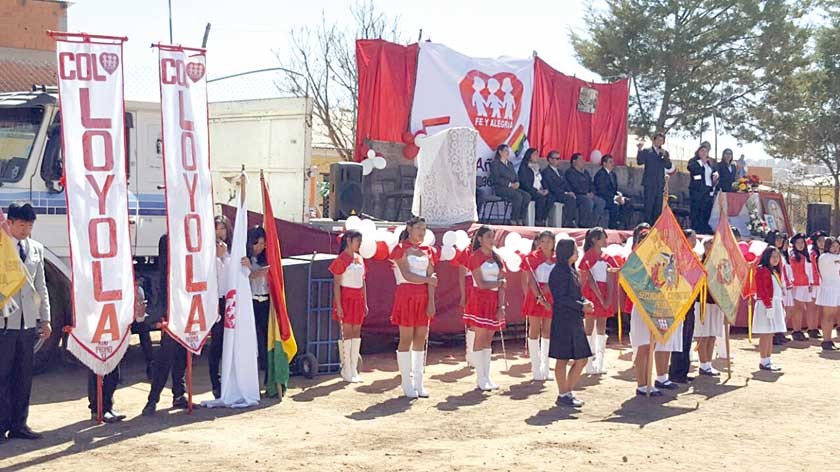 Ayer, alumnos, ex alumnos y maestros desfilaron en la avenida Jaime Mendoza, desde la esquina de la calle Ladislao Cabrera hasta el colegio, en cuyo patio se realizó el acto central de homenaje.