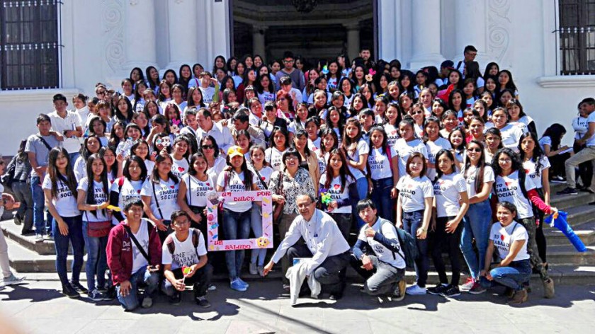 Estudiantes de la Carrera de Trabajo Social, que ayer celebraron cuatro años de vida entregaron un caramelo por un saludo. El gesto fue tomado de buena forma por funcionarios de instituciones o peatones que fueron...