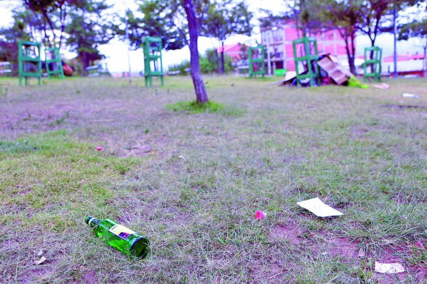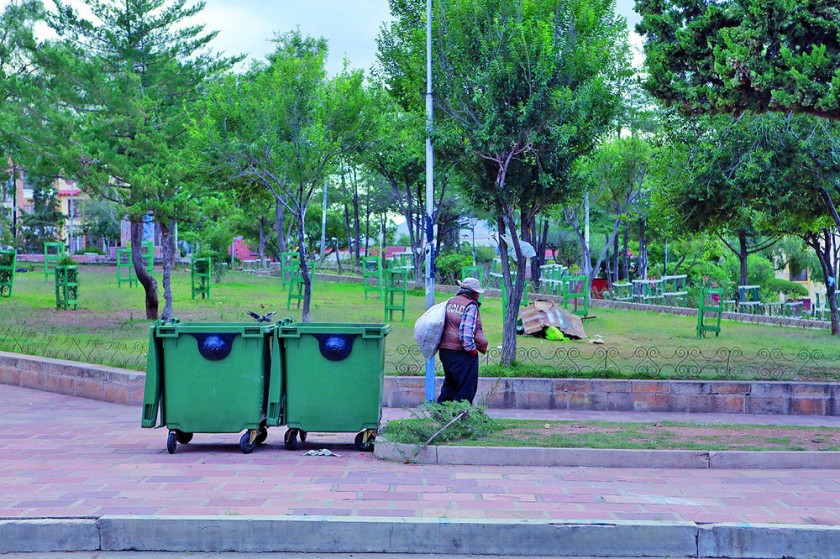 Asimismo, la fuente de piedra ubicada en el centro de la explanada es utilizada como pizarra para grafiteros, generalmente con mensajes obscenos y desagradables para los ciudadanos. Debido a que siempre está vacía, en el lugar se alojan e incluso duermen algunas personas sin techo, las mismas que también se encargan de expandir la basura que el vecindario deja en los contenedores instalados recientemente por la Alcaldía.