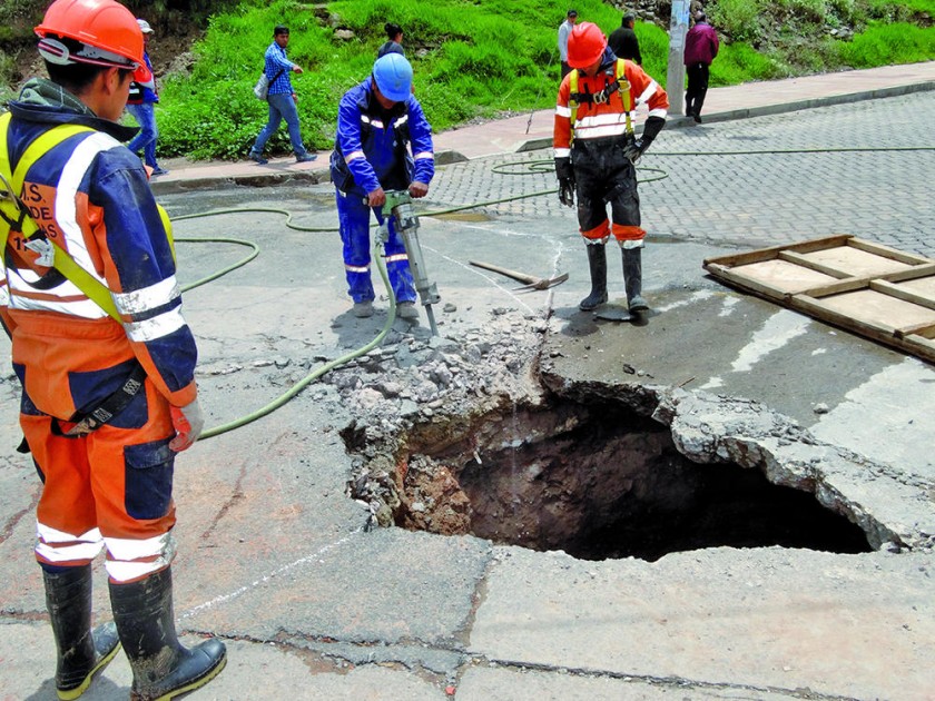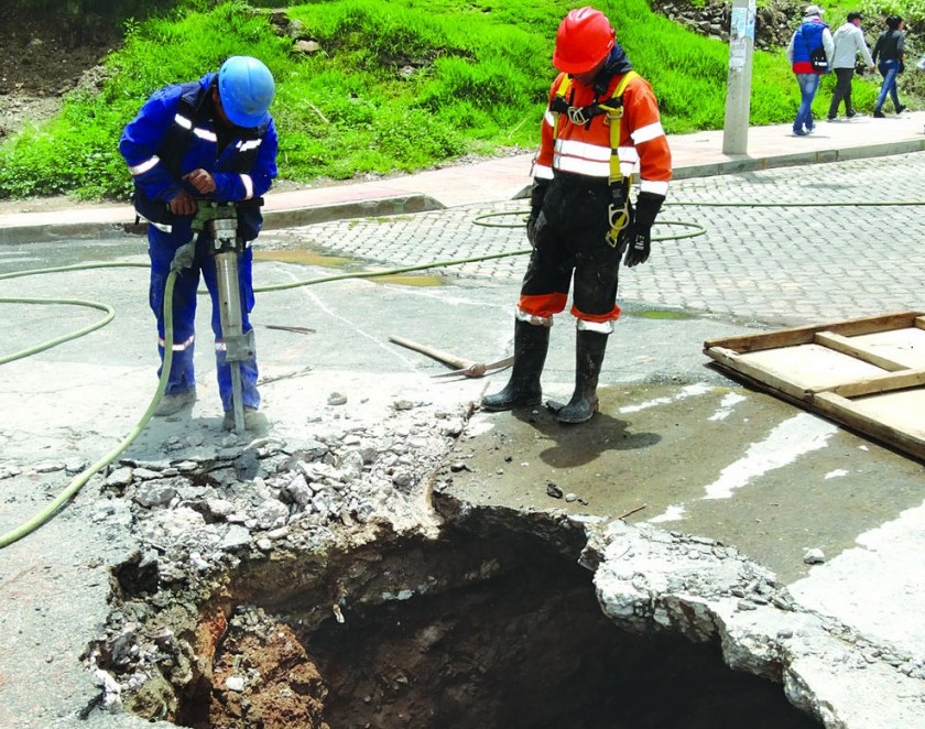 Con la ayuda de linternas e introduciendo algunos objetos de medición intentaron determinar cuánto de profundidad tenía. Como no tocaron fondo decidieron, en coordinación con ELAPAS, cortar el pavimento rígido en una extensión de un metro para observar el interior. Así, descubrieron que se había generado un bolsón de aire de nueve metros de profundidad y seis de diámetro, explicó el responsable de la Unidad de Gestión de Riesgos, Jaime Daza.