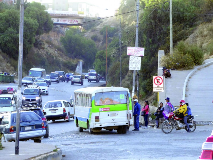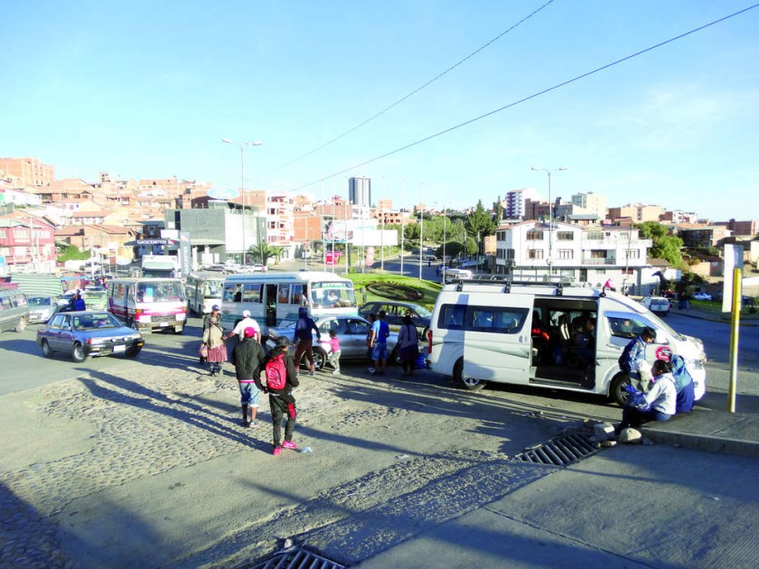 En horas pico, el sector se convierte en un verdadero infierno para peatones y también para conductores. Los primeros pueden estar varios minutos tratando de cruzar de un lado a otro la concurrida avenida Juana Azurduy de Padilla, la misma que se muestra como una de las vías más conflictivas de la ciudad.