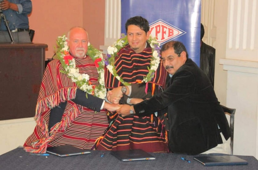 La rúbrica de este acuerdo se realizó en el salón de Convenciones de la Gobernación de Chuquisaca entre el presidente de YPFB, Oscar Barriga, y el representante de la empresa CanCabria Energy Corporation, Cristofer Cornelius.