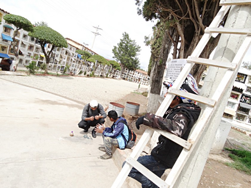 Oscar Cruz es guía turístico en el Cementerio General, aunque reconoce que por la cercanía de la festividad y debido al requerimiento también trabaja limpiando lápidas. El costo por limpieza oscila entre Bs 5 y Bs 15.