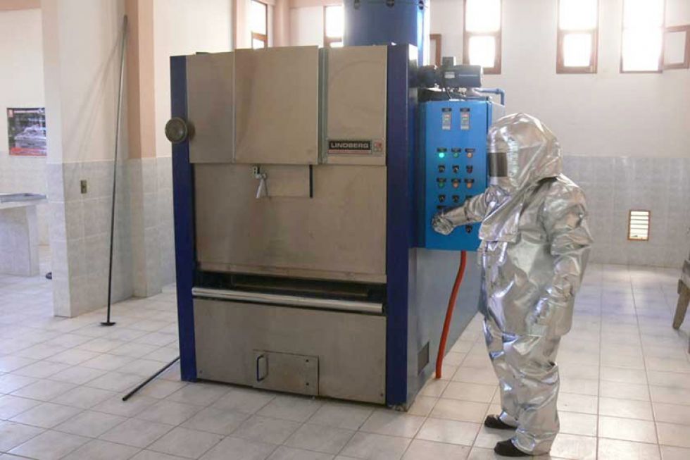 Según el responsable del crematorio, Jesús Yucra, el horno está catalogado como el mejor de Bolivia. Tiene dos cámaras: una superior que calienta hasta llegar a 1.050 grados, y una secundaria que llega a 900 grados. Ambas cámaras evitan que se desprenda olor.