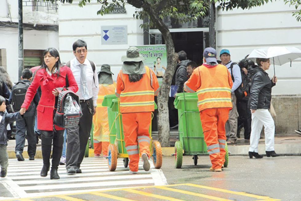 ASEO. Los trabajadores de EMAS cumplen una arriesgada labor para mantener limpia la ciudad. Foto: foto: archivo Acciones inmortalizadas en videos y fotografías virales este año arrancaron sonrisas a trabajadores de la Entidad Municipal de Aseo Urbano Sucre (EMAS), que advierte mayor apoyo y respeto de la población al trabajo que realizan.