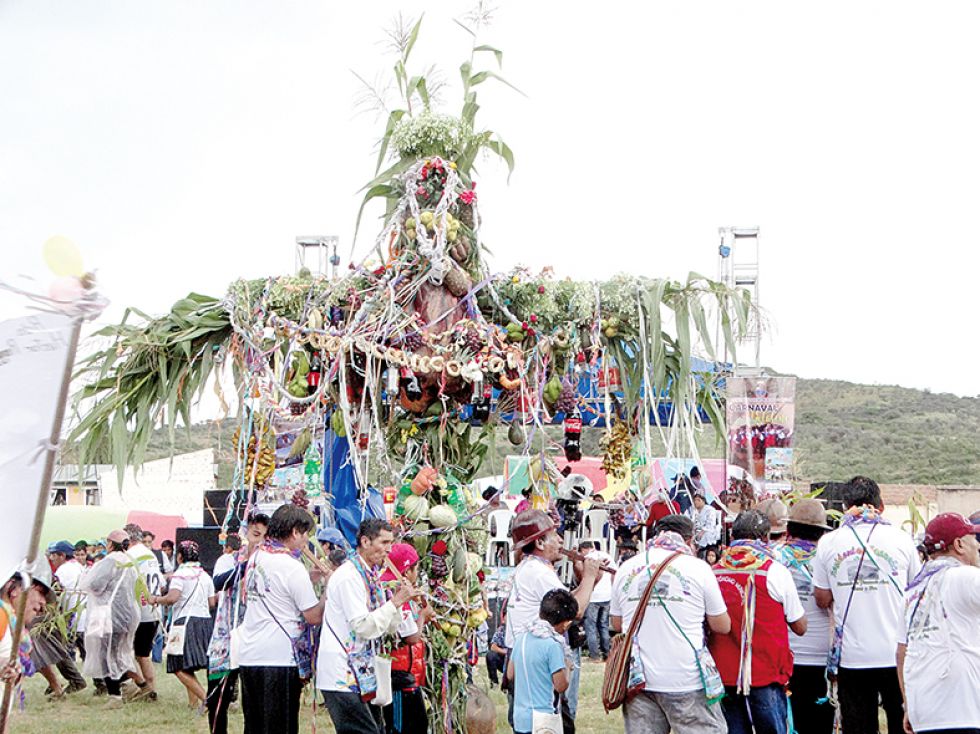 Luego de mediodía la población tomó a manera de graderías las lomas para sentarse y disfrutar de la presentación de las comparsas y pandillas que hicieron su paso con gran entusiasmo en el centro del escenario donde se armó una pukara en forma de cruz; en la estructura de más de tres metros se colocaron verduras y frutas recién cosechadas, panes y otros productos.
