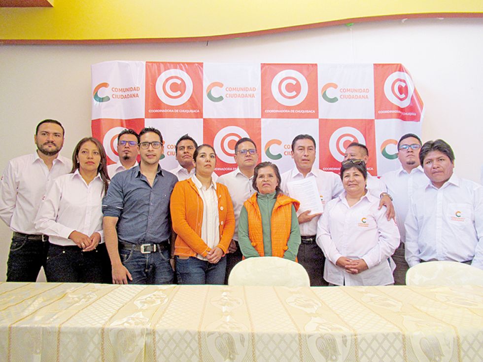 La alianza Comunidad Ciudadana (CC) firmó ayer un acuerdo político con la Coordinadora Departamental de Chuquisaca, liderada por el exdirigente cívico Roberto Balderas, rumbo a las elecciones nacionales. Aseguran que no tiene alcance para las subnacionales.
