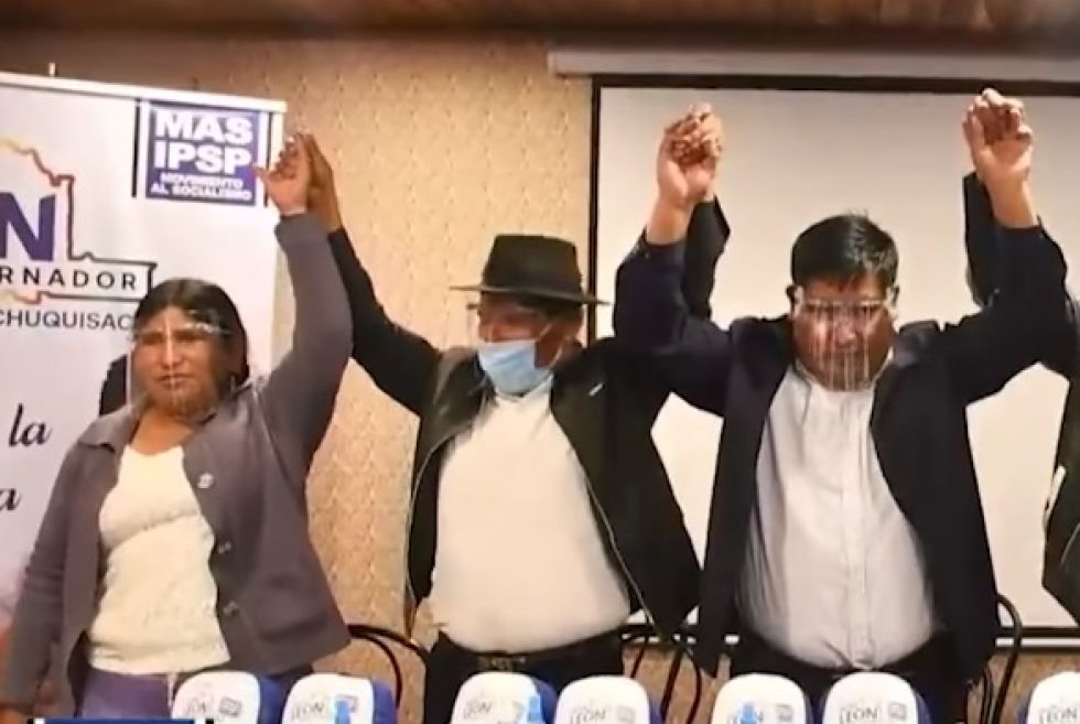 Esta mañana, el candidato a gobernador por el MAS, Juan Carlos León, dio la bienvenida a su partido a Velásquez y Limachi, quienes eran parte de CST.