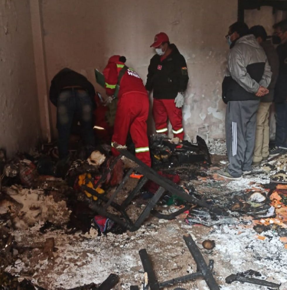 “Estas pericias realizadas por la unidad de Bomberos nos dan cuenta que para el desarrollo de este incendio, no ha intervenido mano humana, es decir, se trata de una falla mecánica, posiblemente un corto circuito que hubiera provocado esta situación. Preliminarmente descartamos cualquier tipo de atentado al domicilio de Damián Condori”, indicó Quispe en una conferencia de prensa.