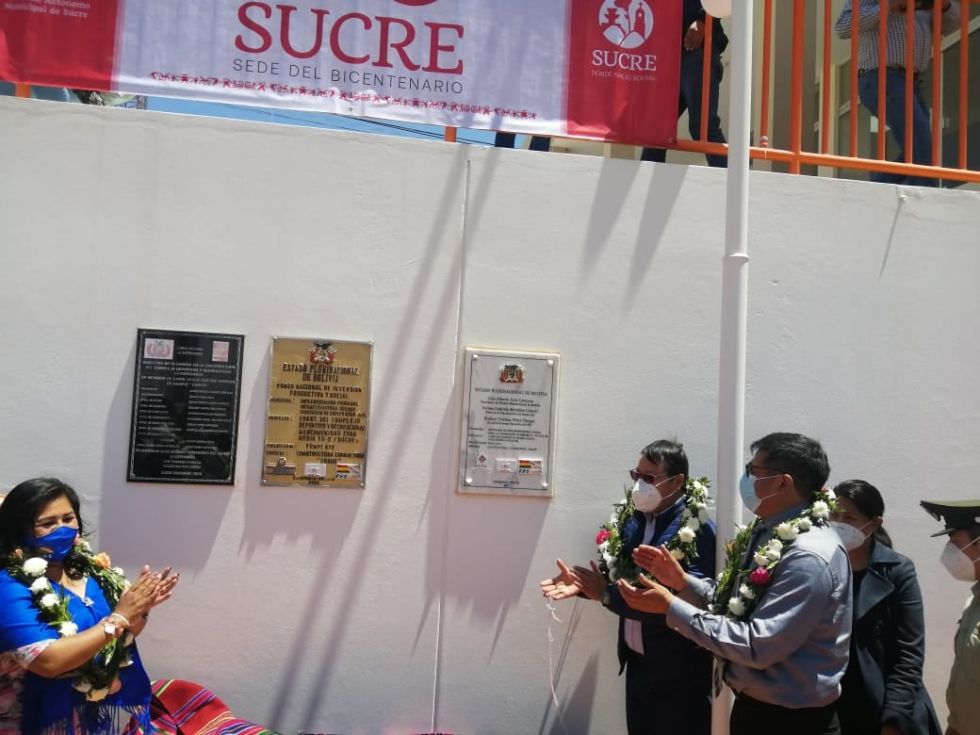 El presidente Luis Arce entregó esta mañana el “Complejo Deportivo y Recreacional” en el barrio “La Esperanza” del Distrito 3 de Sucre; la obra demandó una inversión de Bs 3,1 millones.