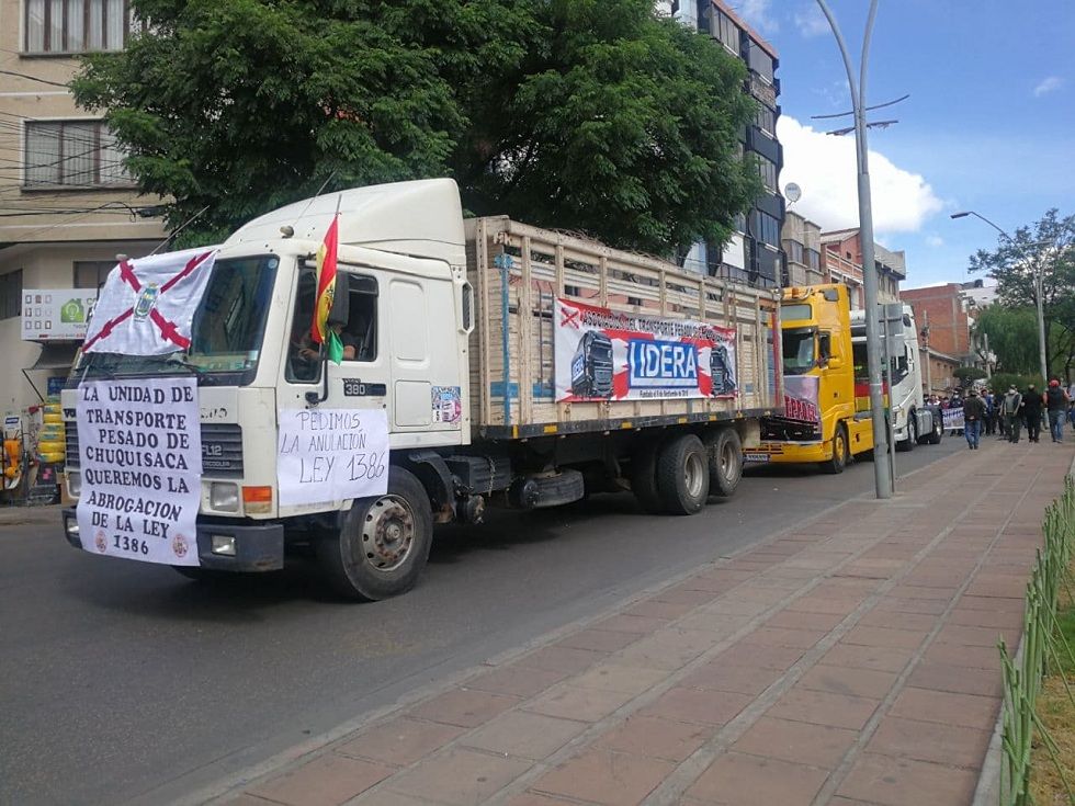 La Unidad de Transporte Pesado de Chuquisaca y el Sindicato Regional de Choferes de Sucre informaron esta noche que este jueves llevarán adelante una marcha en contra de la Ley 1386 de Estrategia Nacional de Lucha contra las Ganancias Ilícitas.