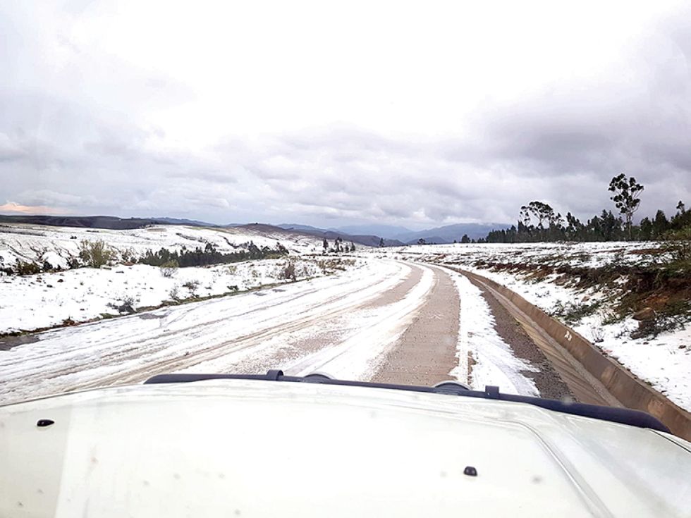 Una fuerte granizada caída la tarde de ayer, cubrió de blanco varias comunidades de los municipios de Tarabuco, Presto y San Lucas, en Chuquisaca. Además, dejó anegada por varias horas la carretera Diagonal Jaime Mendoza que conecta a Sucre con las distintas regiones rurales del departamento.
