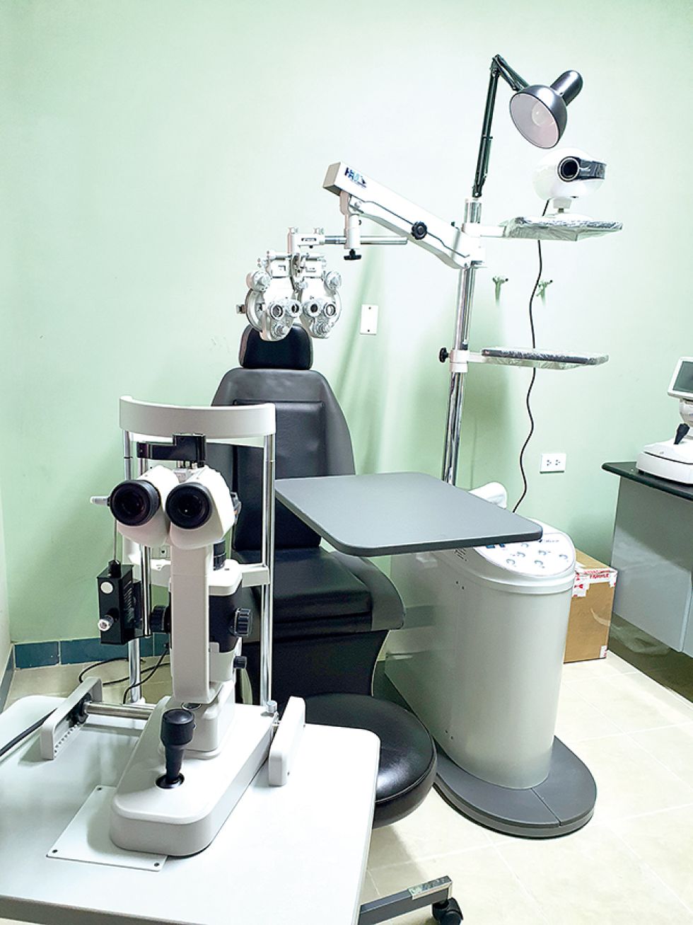 El equipamiento entregado es de última generación y permite realizar exámenes básicos y medición de anteojos. Además, el consultorio cuenta con un microscopio de mesa y un computador de medición refractaria, entre otros equipos.