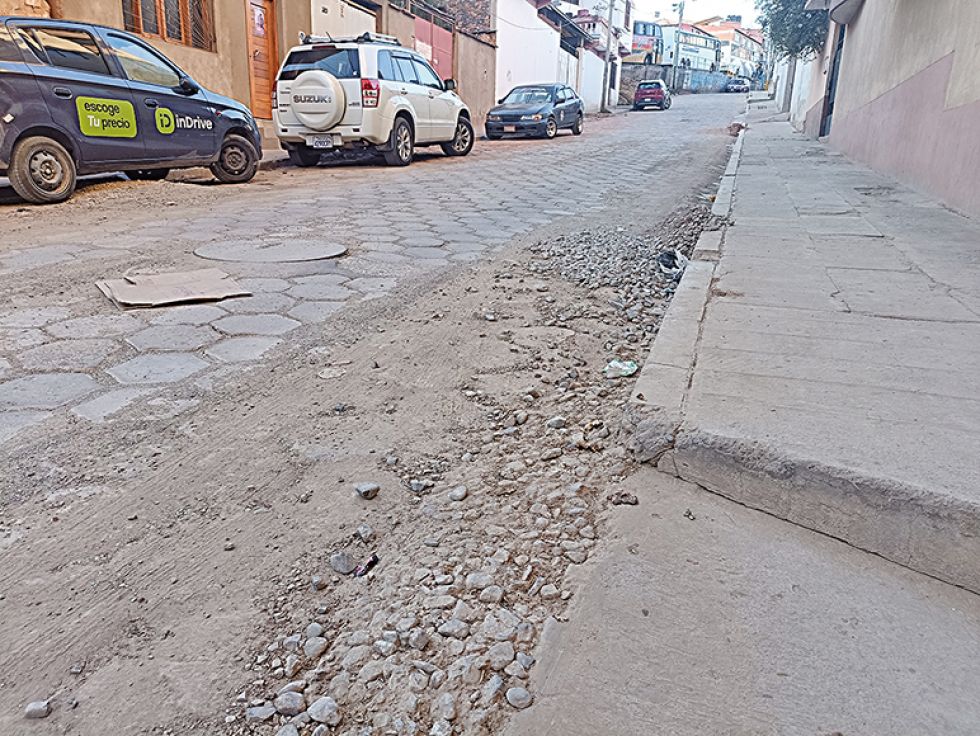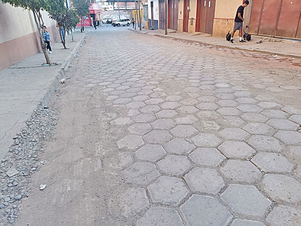 La calle José Aguirre, ubicada entre la avenida Marcelo Quiroga Santa Cruz y la Terminal Interprovincial, es una de las que ha presentado mayores deterioros en su enlosetado.