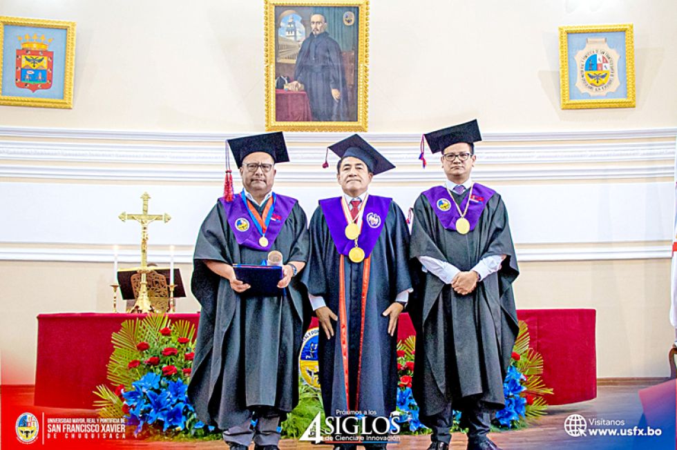 Además, recibirán el mismo honor: Peter Haberle (Alemania), prestigioso profesional en Derecho Constitucional; Alessandro Mandolini (Italia), por su amplia trayectoria como líder y referente en la Ingeniaría Geotécnica a nivel global; Marcelino Muñoz Sánchez (México), por su trayectoria en el campo de las letras; y Miguel Arrufat Pujol (España), por su liderazgo y apoyo a la educación mediante proyectos destinados al cuidado y la protección del patrimonio de Sucre y Bolivia.