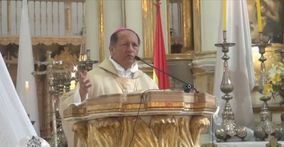 El arzobispo de Sucre, monseñor Ricardo Centellas, durante su homilía de este domingo. Foto: Captura de video El arzobispo de Sucre, monseñor Ricardo Centellas, llamó este Domingo de Resurrección a apostar por una nueva vida y un nuevo país durante su mensaje de Pascua.