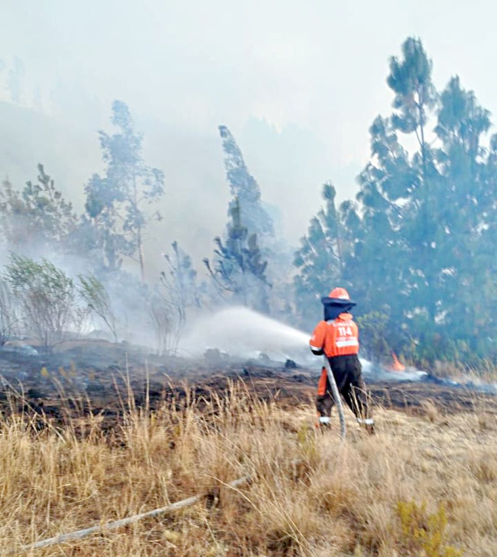 EMERGENCIA. Un bombero intenta controlar las llamas en el sector de Punilla. Foto: Municipio de Sucre Los incendios registrados el miércoles en comunidades de los distritos 6 y 8 del municipio de Sucre, provocaron un aumento en el Índice de Contaminación Atmosférica (ICA), que este jueves alcanzó un valor de 102 en el centro y alrededores de la capital. La calidad del aire se clasificó como “mala” con un riesgo “moderado” debido a la concentración de Partículas en Suspensión Menores a 10 micrones (PM10), que subió a 51 microgramos por metro cúbico (µg/m³).