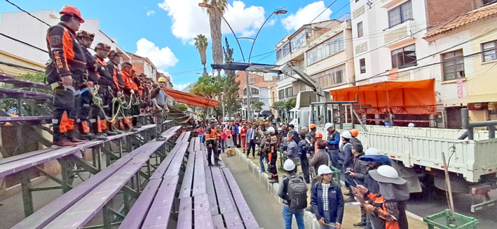 Por su parte, Reynaldo Zambrana, delegado de la Sociedad de Ingenieros de Bolivia (SIB) Chuquisaca, indicó que una de las principales observaciones es la “famosa cruz de San Andrés que tiene que ser de perfiles, no de barras corrugadas”, algo que, por ejemplo, ocasionó el desplome de graderías en el convite de la festividad de Ch’utillos en Potosí.