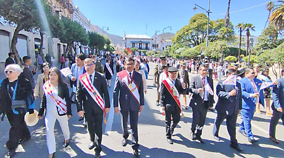 Año que pasa la celebración por la fundación de la Villa de La Plata, hoy Sucre, cobra más relevancia. Así lo probaron los actos centrales de este lunes 29 de septiembre, que tuvieron mayor participación de instituciones y autoridades nacionales, aunque los colegios estuvieron ausentes.