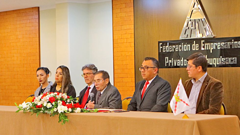 En el acto, que se desarrolló en la Casa Empresarial, estuvieron presentes la diputada Pamela Alurralde y los concejales Antonio Pino y Melisa Cortés, además de representantes de instituciones y personalidades de Chuquisaca.