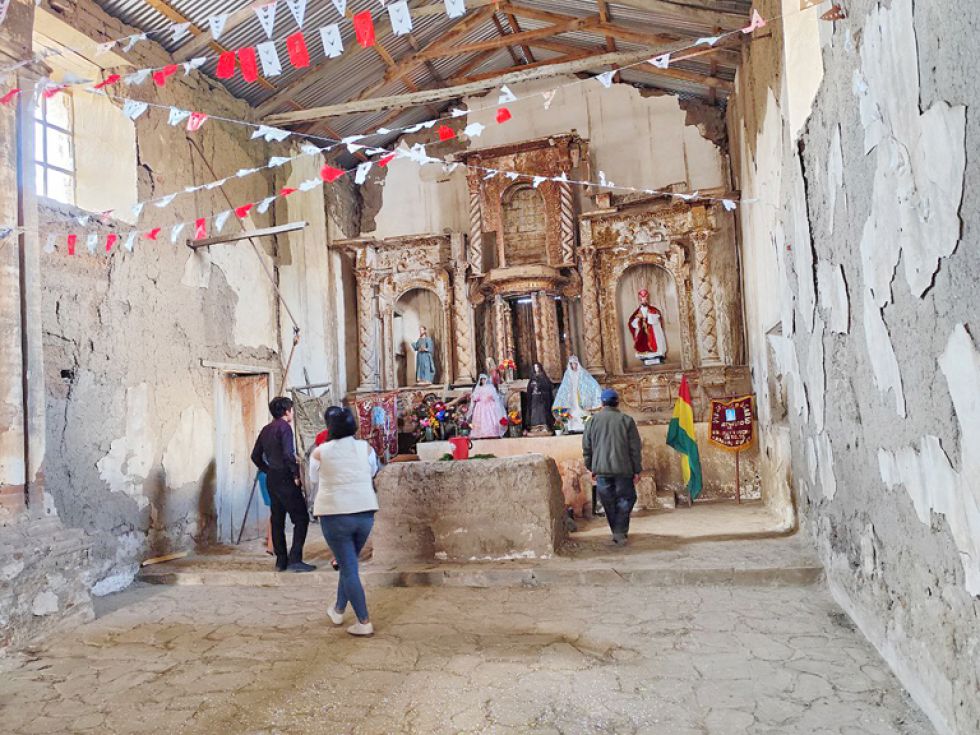 El dirigente indicó que hasta 2015 la infraestructura quedó prácticamente sin techo –que era de teja–, por lo que ante la nula respuesta de las autoridades municipales para su restauración, los comunarios organizaron una colecta para comprar calamina que fue colocada un año después, lo cual ayudó a conservar lo poco que queda.