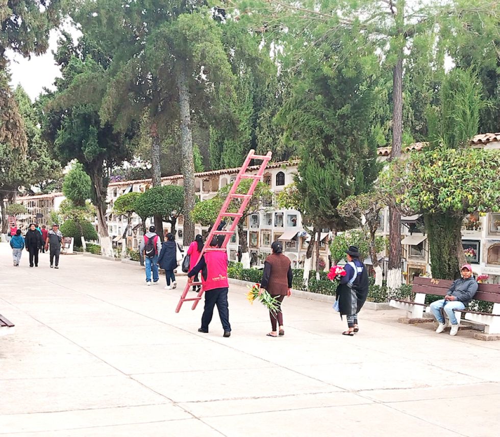 PREVIA. En la antesala de la festividad, familiares de los difuntos ya visitan el Cementerio General. Foto: Correo del Sur Con el objetivo de garantizar el orden y la seguridad durante la festividad de Todos los Santos en el Cementerio General, la Alcaldía de Sucre presentó un plan integral de acción que prohíbe el ingreso de bebidas alcohólicas y de personas en estado de ebriedad, mientras que los grupos musicales podrán acceder al camposanto los días 31 de octubre, 1 y 2 de noviembre.