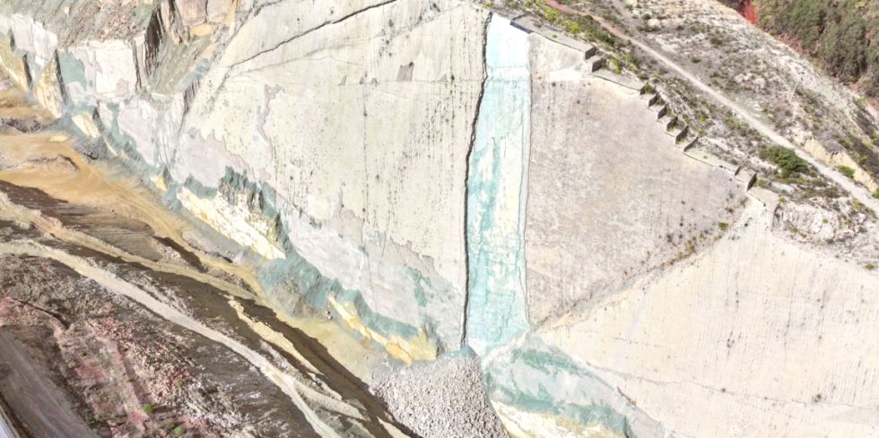 DAÑO. Una imagen aérea muestra la magnitud del último deslizamiento en el farallón de Cal Orck'o Foto: Gentileza Hace casi cuatro meses, en una reunión en el Palacete de El Guereo, un consultor del Banco Interamericano de Desarrollo (BID) advirtió sobre los riesgos que corría el farallón de Cal Orck’o, que la semana pasada sufrió un deslizamiento afectando a las huellas de dinosaurios. No asistió ningún representante ni de la Alcaldía de Sucre, ni de la Gobernación de Chuquisaca ni de la Universidad San Francisco Xavier.