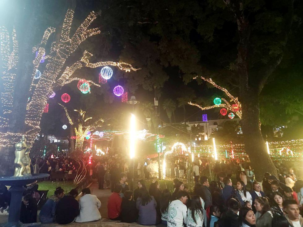 Sucre, la ‘Ciudad Blanca’, se pone multicolor para dar la bienvenida al mes de la Navidad. Desde anoche, más de 42.000 luces iluminan plazas y plazuelas, mientras que cientos de familias se contagiaron del espíritu festivo en actos simultáneos con música en vivo, los tradicionales chuntunquis y el clásico chocolate con buñuelos.