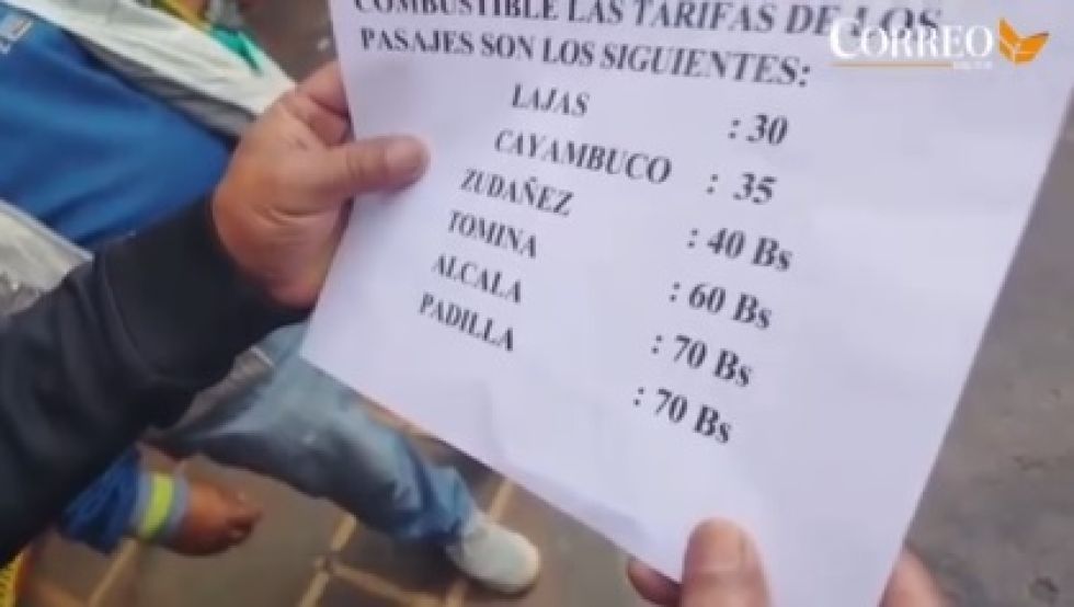 Así, por ejemplo, el viaje a Padilla pasó de Bs 35 a Bs 70 desde este miércoles, constató CORREO DEL SUR en la Parada a Tarabuco.