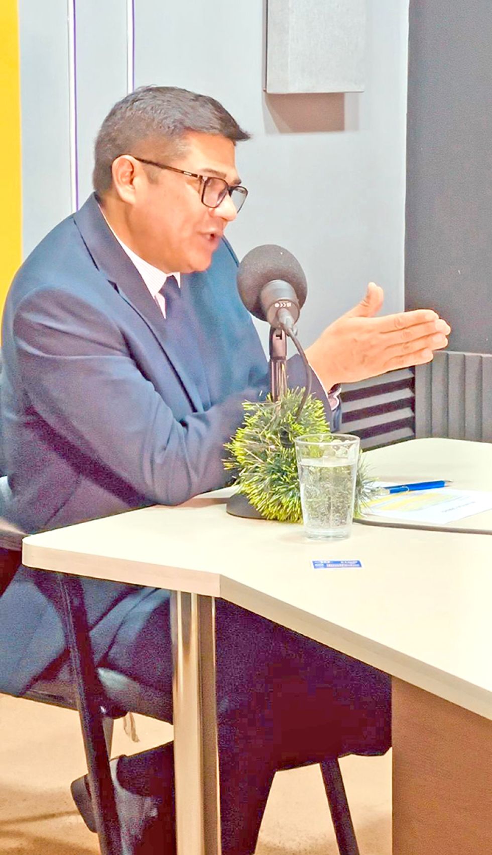 ENTREVISTADO. Enrique Leaño, alcalde de Sucre, en la cabina de Correo del Sur Radio (FM 90.1), esta semana. Foto: Gentileza El alcalde de Sucre, Enrique Leaño, cierra este 2026 su periodo de un lustro, ya en campaña para su reelección, que anunció hace más de dos años.