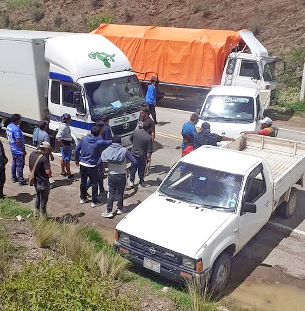 MARTES. Con camionetas trancaron la carretera para retener al camión que llevaba carne de pollo. Foto: RRSS “Nos siguieron desde Surima (Distrito 7). Agredieron a mis hermanas con fuerza y querían quemar el carro con gasolina; por defender eso, me golpearon en mi cabeza y me dieron patadas. A mi chofer lo agarraron a palazos”, relató este miércoles un hombre interceptado el martes por un grupo de avicultores locales cuando trasladaba carne de pollo de Santa Cruz a Potosí con la intención de comercializarla a 14 y 15 bolivianos. Dijo que no descarta asumir acciones legales contra sus agresores.