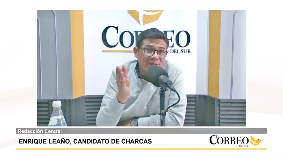 ENTREVISTADO. Enrique Leaño, alcalde de Sucre y candidato a la reelección, en Correo del Sur Radio. Foto: Captura de pantalla El alcalde de Sucre, Enrique Leaño, candidato a la reelección con Charcas, sostiene que cinco años son insuficientes para ejecutar todos los proyectos y que en su siguiente periodo resolverá los problemas del agua, la basura y ejecutará pavimentos, avenidas y puentes de conexión, entre otros.
