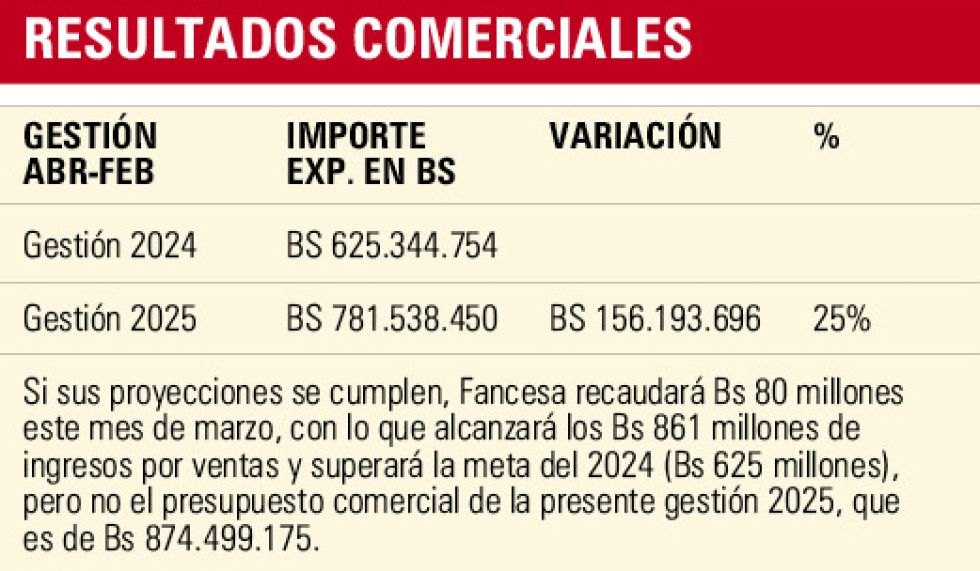 Fancesa superará los Bs 800 millones en ventas